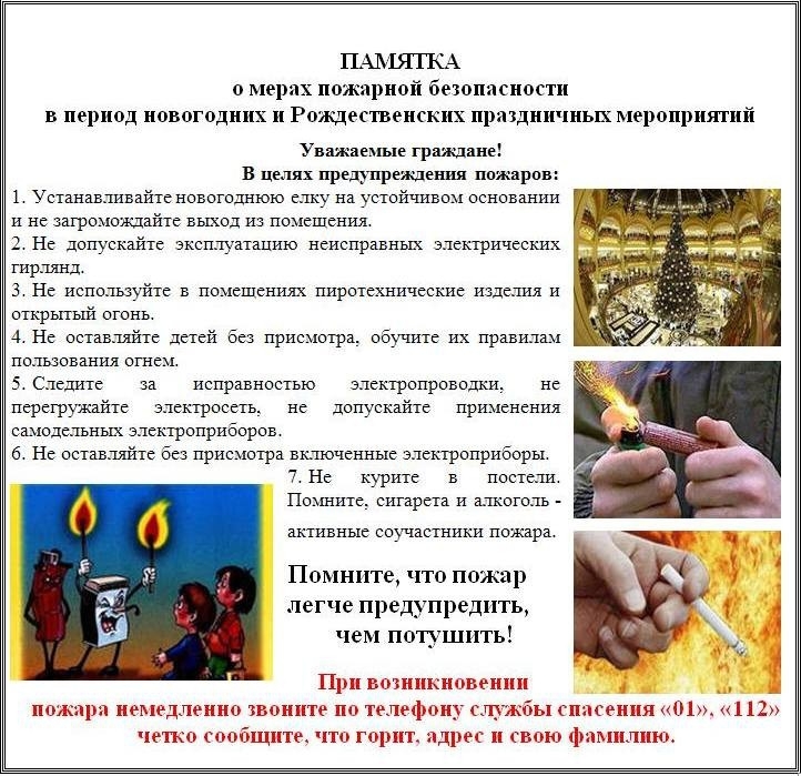 Памятка о мерах пожарной безопасности в период новогодних и Рождественских праздничных мероприятий