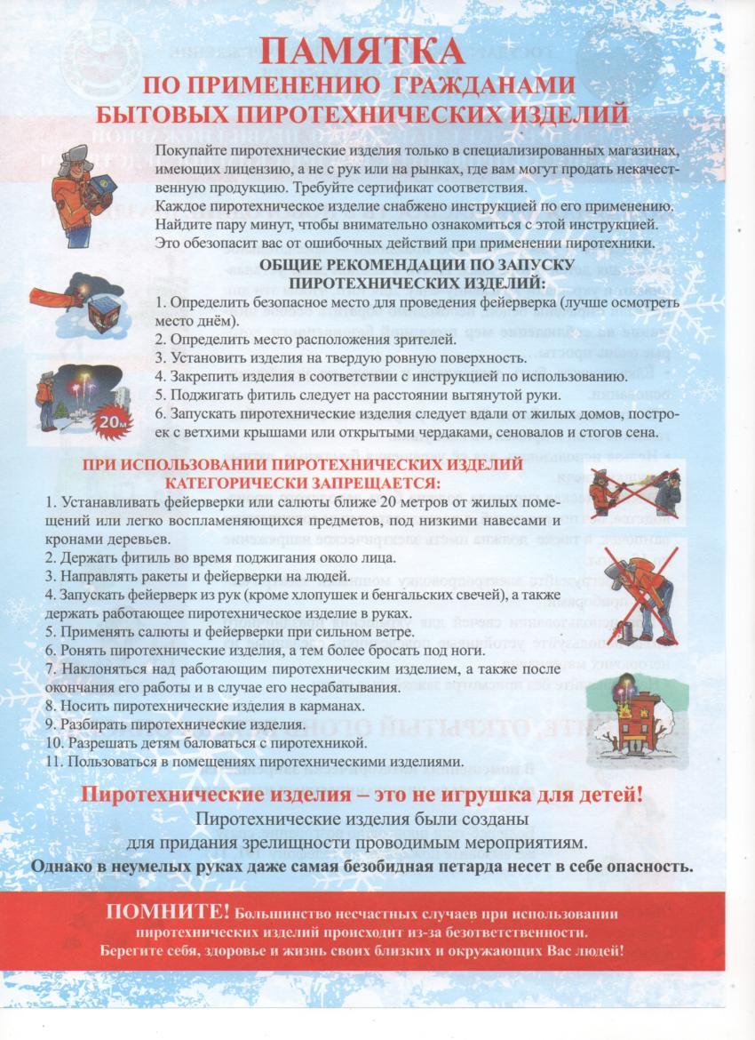 Памятка по применению гражданами бытовых пиротехнических изделий